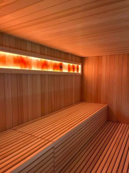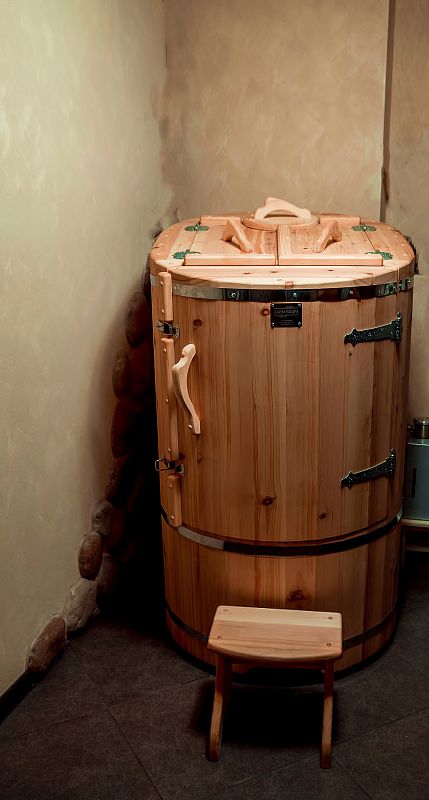 Это специально оборудованная готовая деревянная кабина для сухого и влажного парения. Электропечь нагревает пространство внутри и позволяет сбрызгивать камни водой, слегка увлажняя воздух. Такая процедура позволяет избежать перегрева. Каркас сауны выполнен из массива кедра, снаружи и внутри обшит липовой вагонкой сорта «Экстра» и имеет теплоизоляционный слой. Также двухуровневый полок идёт из кедра для обогащения внутри кабины полезными фитонцидами, а в сочетании с противовирусными свойствами липы сауна становится настоящим источником здоровья.