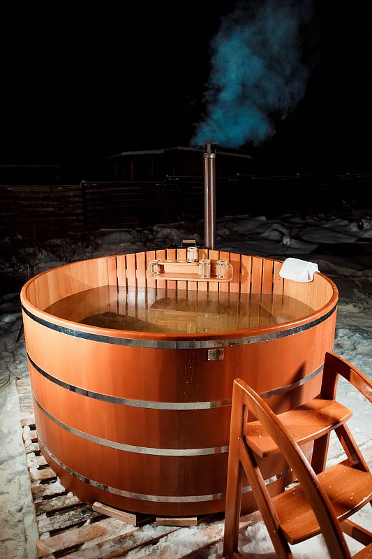 - Ограждение из кедра вокруг печи